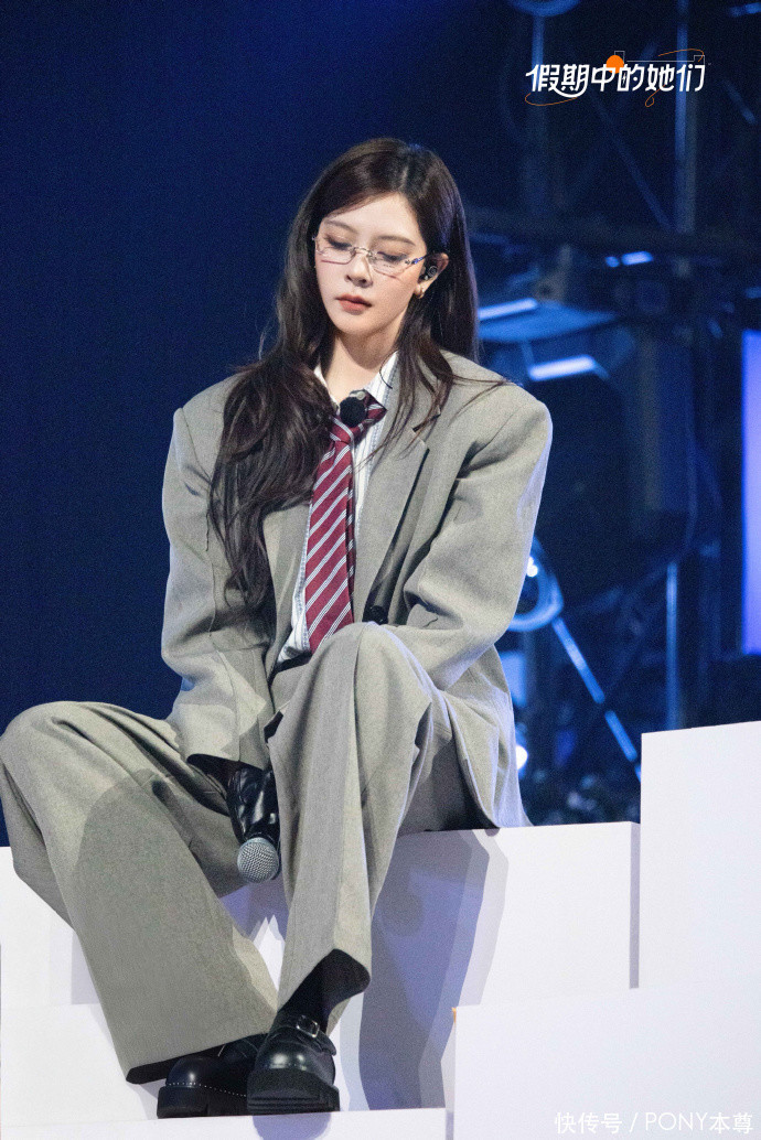 如果说性感是宋妍霏驾轻就熟的穿搭,那么复古学院风也是她的舒适区!比如综艺节目中的西装搭配,她内搭一件白色衬衫,搭配一条红白撞色领带,佩戴金丝边框眼睛后,就像学姐到来!